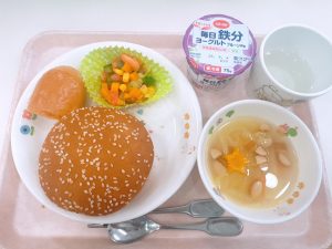 幼児さんはゴマのついた本格的なバンズに、乳児さんは食べやすいようにサンドイッチスタイルで提供してくれました。