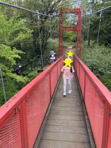 小さな赤いつり橋も、少し揺れるところが本物のようでドキドキしました。