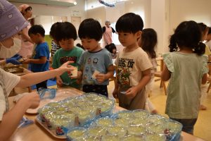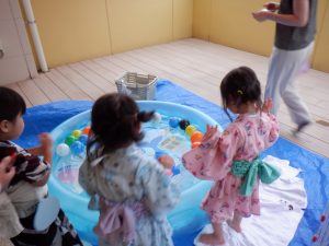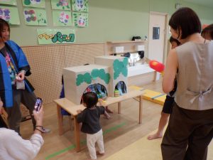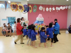 2025.07.25 アルバム ゆらりんまつり 7月9,10,11日の夕方、ゆらりん祭りを開催しました。 子どもたちが作成した提灯をホールに飾り、いよいよお祭りがスタートです。 保護者の方にもお越しいただき、盆踊りを踊ったりホールやウッドデッキを使って ヨーヨー屋さんやワニワニパニックなど色々なゲームコーナーを楽しみました。 最終日には、チケットを持ってやきそばやかき氷風ゼリーを買いに行きました。 記事一覧へ戻る