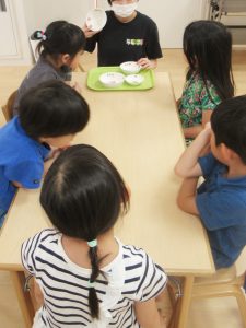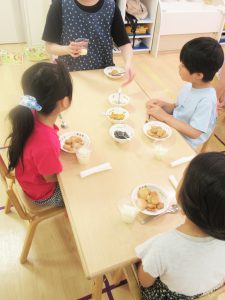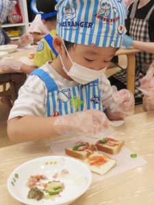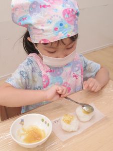トッピングも譲り合いながら楽しそうに作り、みんなで「おいしいね」と言い合いながら食べていました。