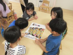 答え合わせのときに「どうしてよくないと思う?」と聞くと「かっこ悪いから」「口の中のご飯がお友だちに飛んじゃうかも」とたくさんの意見を伝えてくれました。