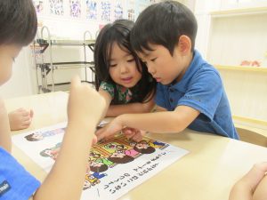 絵の中に潜むマナー違反をグループのみんなで話し合いながら見つけ出します。