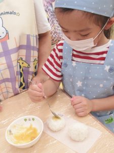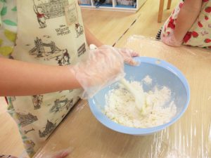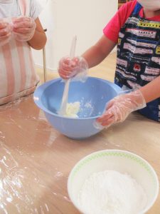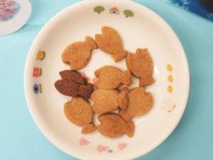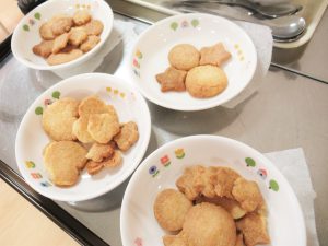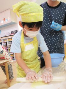 クッキー作りは、生地を混ぜて伸ばして型抜きまで行いました。