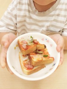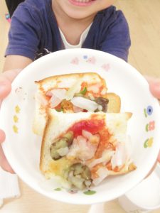 ばんびぐみの子どもたちとピザトーストを作りました。