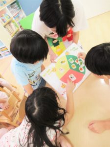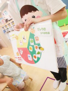 前日から三色食品群の絵本を読んでしっかり予習してから参加してくれたきりんぐみさん。