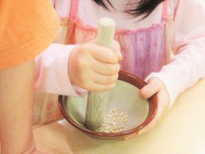 最後は幼児クラスできりたんぽを作りました。