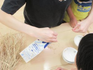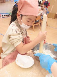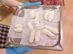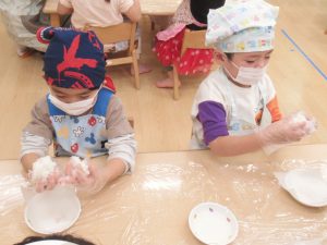 おにぎり作りはもう得意な様子で「もちもちしてるね」と話しながらとても上手に作れていましたよ。