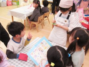 幼児クラス合同で『きりんカフェ』を開催しました。