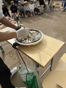 2025.11.21 食育 アルバム 第2回 おさかな先生 「ヒラマサ」 今回の命のお勉強は3.4歳児クラスで「ヒラマサ」 身体に黄色い線があるのが特徴です。 油がのっていて、切り身になると艶がすごい! 触って、「かた~い!」 切られる所を見て、「うわっ・・・」 焼かれて、「いいにおい~」 食べて、「おいしい!」「おかわり!」 と今回も1匹の生き物の命を大事に「いただきます」そして「ごちそうさま」 と、参観の保護者も簡単調理法を教えていただき、とても楽しい食育でした。 記事一覧へ戻る