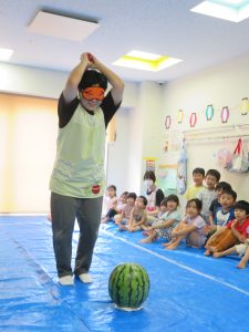 今日は暑い夏を楽しもうとスイカ割り🍉をしました⭐