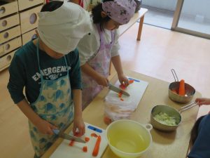 2026.03.18 食育 アルバム 5歳児クッキング🥄 5歳児さんが食べたい給食は【カレー🍛】とリクエストが出たので それなら作っちゃおう!!ということで具材を決めてLet’s Cooking🎵 お米を研いで炊飯器へ✨ 具材をゆっくり切っていくよ~🔪 具材を炒めて味を調えよう🍲 丁寧に灰汁をすくいます カレーができたから園長先生に食べてもらおう💕 園長先生!おいしい?😊 すっごくおいしいよ~👍 記事一覧へ戻る