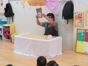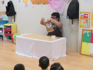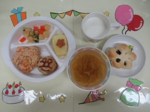 2026.03.18 献立 アルバム 3月誕生会🎂 今年度最後の誕生月! 11ヵ月間お友だちの誕生日をお祝いしてきた 3月生まれさんがいよいよお祝いされる側へ✨ 先生からは【マジックショー🎩】 不思議な袋とお茶があるよ 袋の中にお茶を入れるよ あれれっ💦お茶はどこへ? 【給食&おやつ】 ・お花ごはん、ハンバーグ、和風ピクルス、キャベツのスープ、りんご &お花あんぱん、牛乳 記事一覧へ戻る